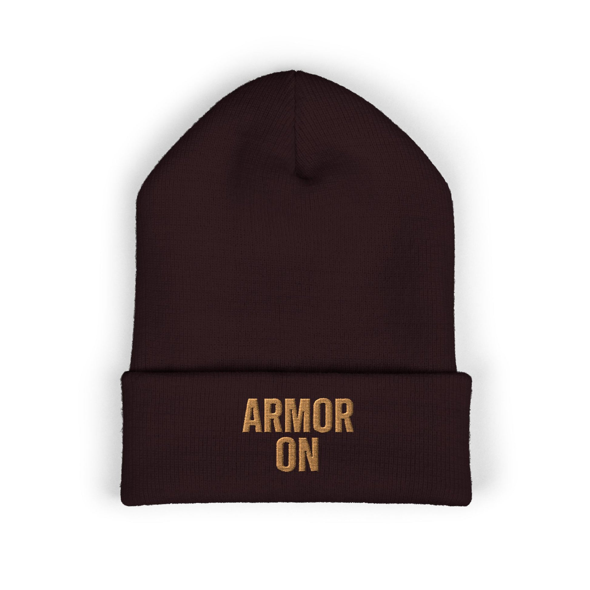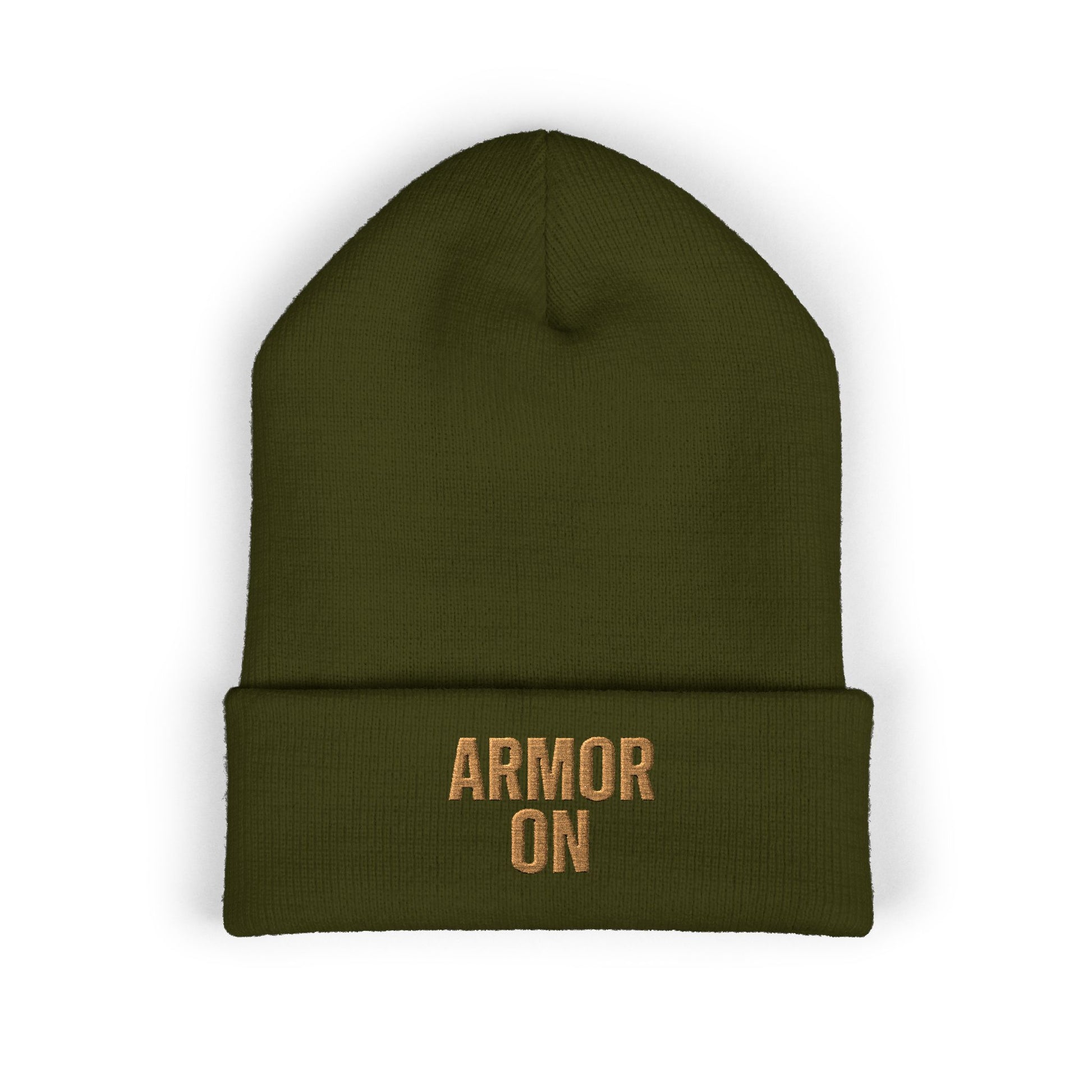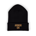 Classic Cuffed Beanie - 'ARMOR ON' Embroidered Winter Hat, Cozy Knit Hat, Gift for Him/Her, Casual Streetwear, Holiday Accessory