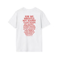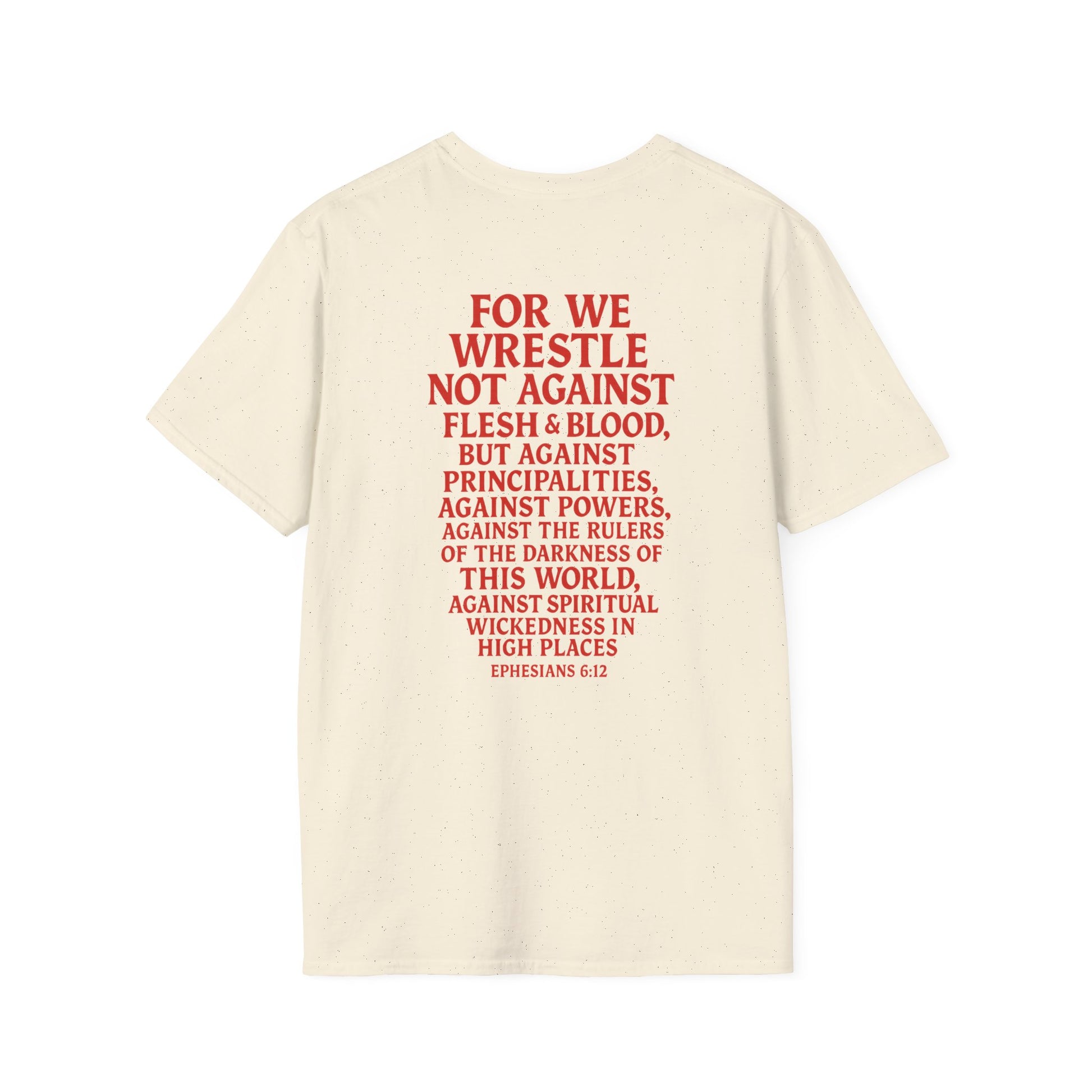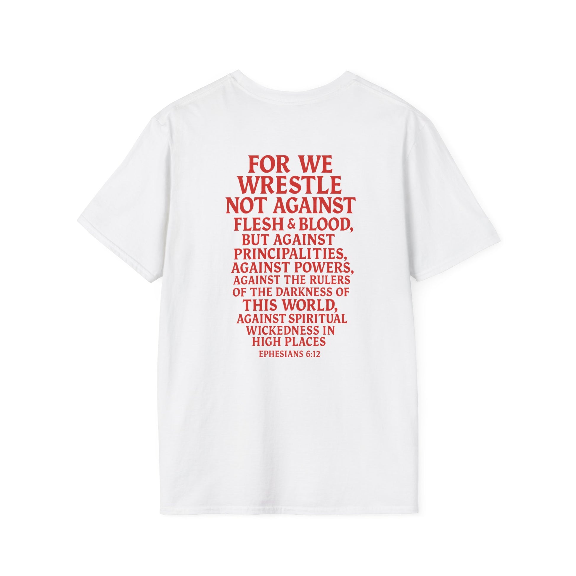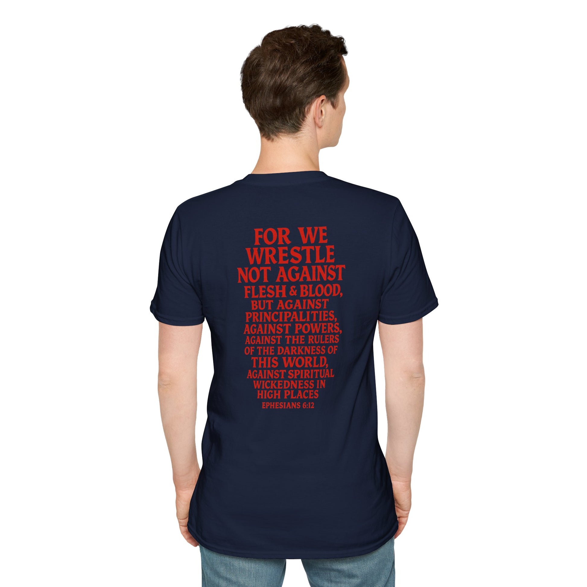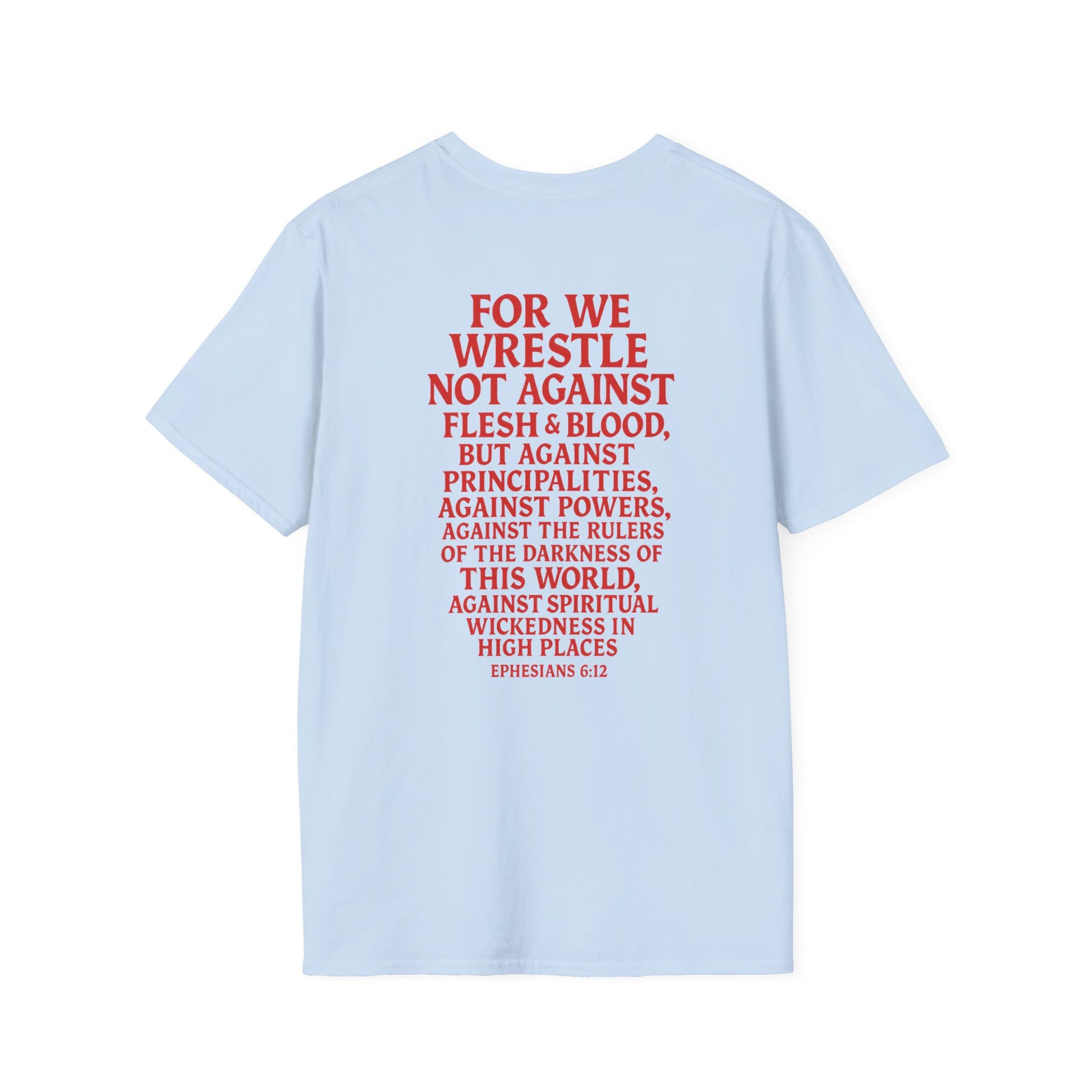 Introducing a stylish Unisex Softstyle T-Shirt that effortlessly combines comfort and meaning. This tee boasts a unique design featuring powerful imagery and inspirational text, making it a perfect conversation starter. Ideal for casual outings or relaxed gatherings, it brings a sense of confidence and style to your wardrobe. Its lightweight fabric ensures breathability, making it suitable for year-round wear. Whether you're a fan of graphic tees or looking for a thoughtful gift, this t-shirt resonates with individuals who value both fashion and depth. Perfect for holidays, faith-based celebrations, or simply expressing yourself, this shirt serves as a great addition to any outfit.