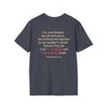 Discover the perfect blend of style and comfort with this Unisex Softstyle T-Shirt. Designed with a timeless crew neckline and a classic fit, it's ideal for any occasion, whether it’s a casual day out or a relaxed evening gathering. The inspirational quotes on the front and back create a positive vibe, making it a wonderful choice for those who cherish their faith and values. With its ethically sourced materials, this t-shirt not only feels great but also supports sustainable practices. Perfect for adults looking to express their spirituality, it makes a thoughtful gift for holidays like Christmas, Easter, or personal milestones such as baptisms or confirmations. Elevate your wardrobe with this versatile piece that resonates with love and inspiration!