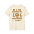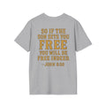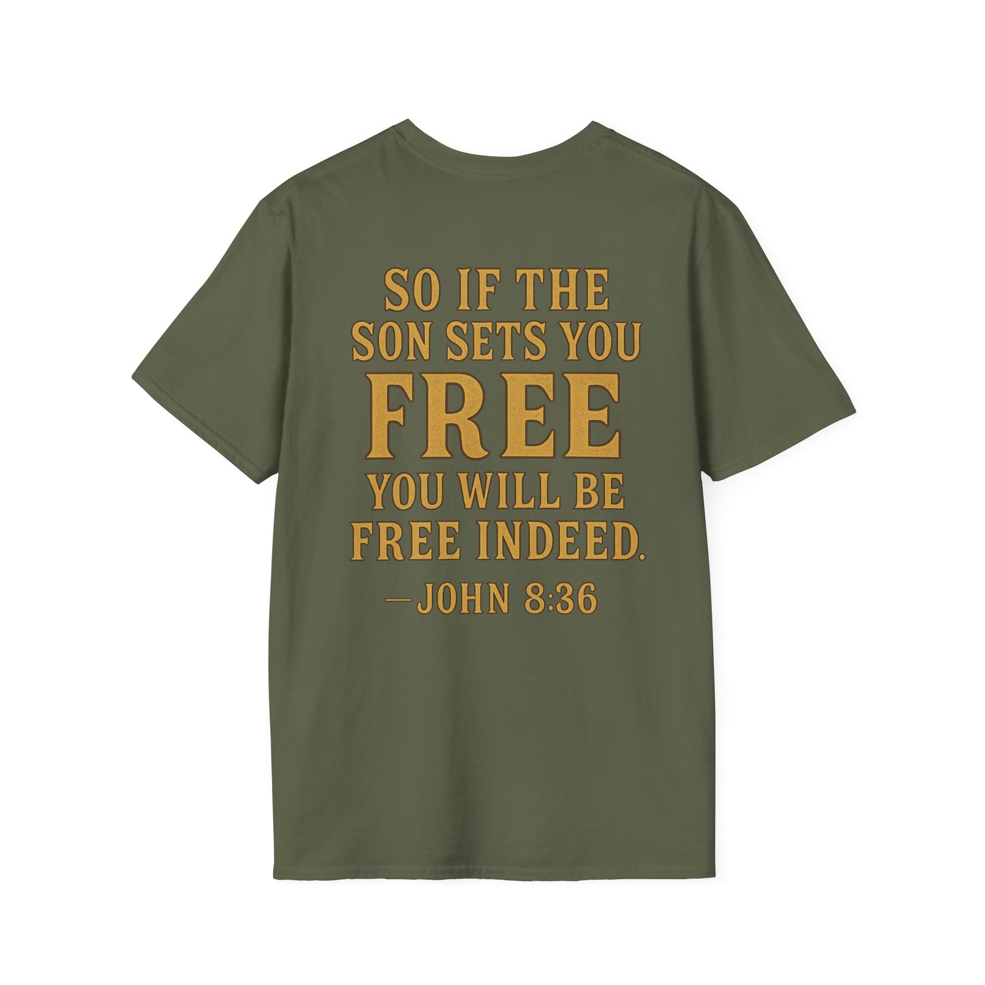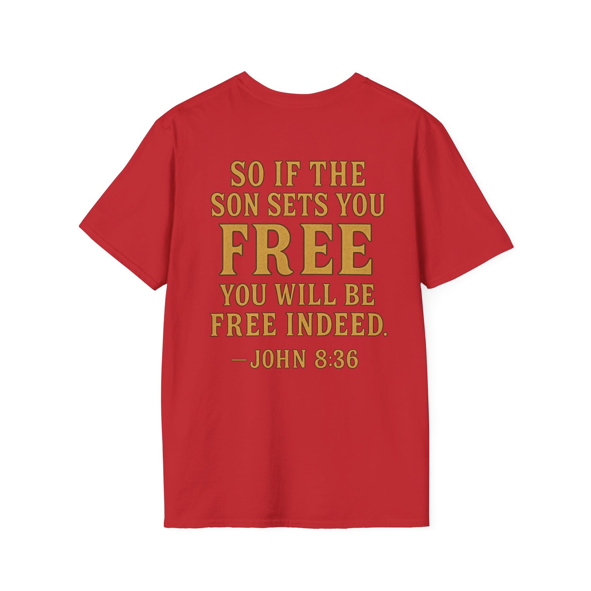 Showcase your bold spirit with this unisex softstyle T-shirt, a perfect blend of comfort and statement. Featuring a striking graphic inspired by freedom and strength, this shirt captures attention while providing a relaxed fit for everyday wear. Ideal for casual outings or as a thoughtful gift, it brings a motivational vibe to any wardrobe. Perfect for spiritual gatherings, community events, or simply to express your beliefs, this T-shirt resonates with those who value freedom and empowerment. Celebrate occasions like Independence Day, church services, or personal milestones with this meaningful apparel.