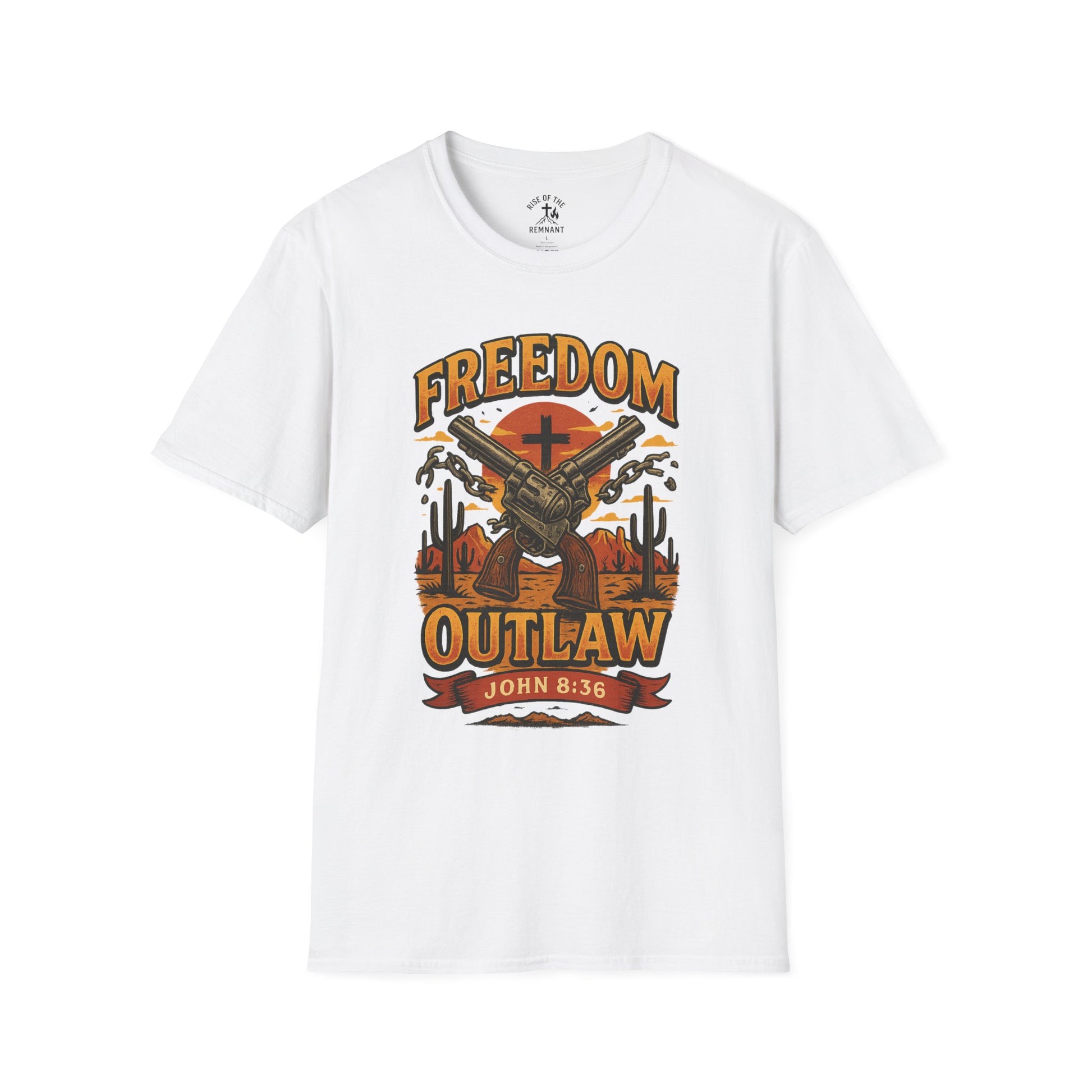 Freedom Outlaw Unisex Softstyle T-Shirt, Inspirational Tee, Christian Apparel, Faith-Based Gift, Casual Wear, Summer Fashion