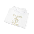 Embrace your faith with this comfortable and stylish Unisex Heavy Blend™ Hooded Sweatshirt. Designed for warmth and ease, this sweatshirt features a spacious kangaroo pocket perfect for keeping your hands cozy, making it an ideal choice for chilly days. The adjustable drawstring hood and unique design elements give it a relaxed yet chic vibe, making it suitable for casual outings, church events, or a day at home. This sweatshirt is perfect for individuals who appreciate faith-inspired apparel, especially women who want to express their devotion to Jesus in a fashionable way. It is a wonderful choice for holidays such as Christmas, Easter, or any religious gatherings, allowing wearers to showcase their beliefs with pride.